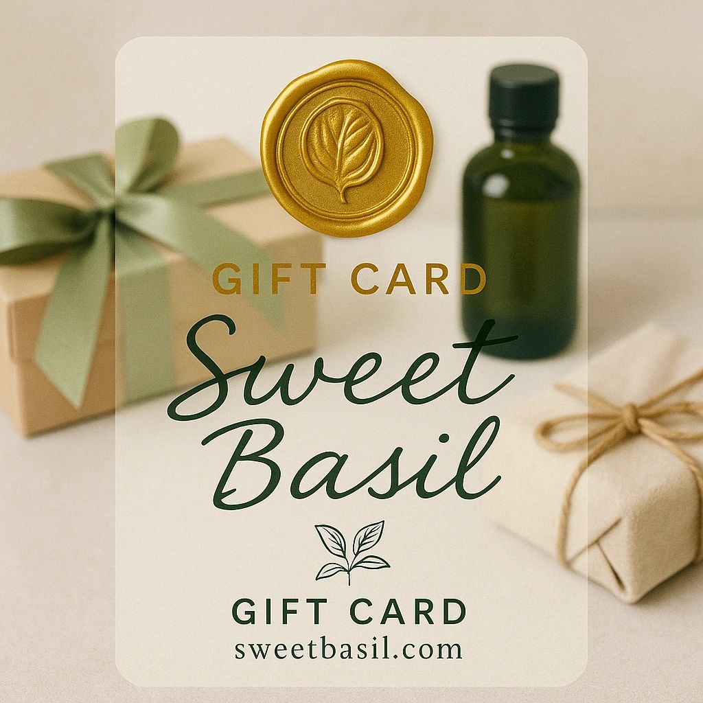 Surprise your loved ones with a Sweet Basil gift card! Our gift cards can be redeemed for any of our luxurious products.